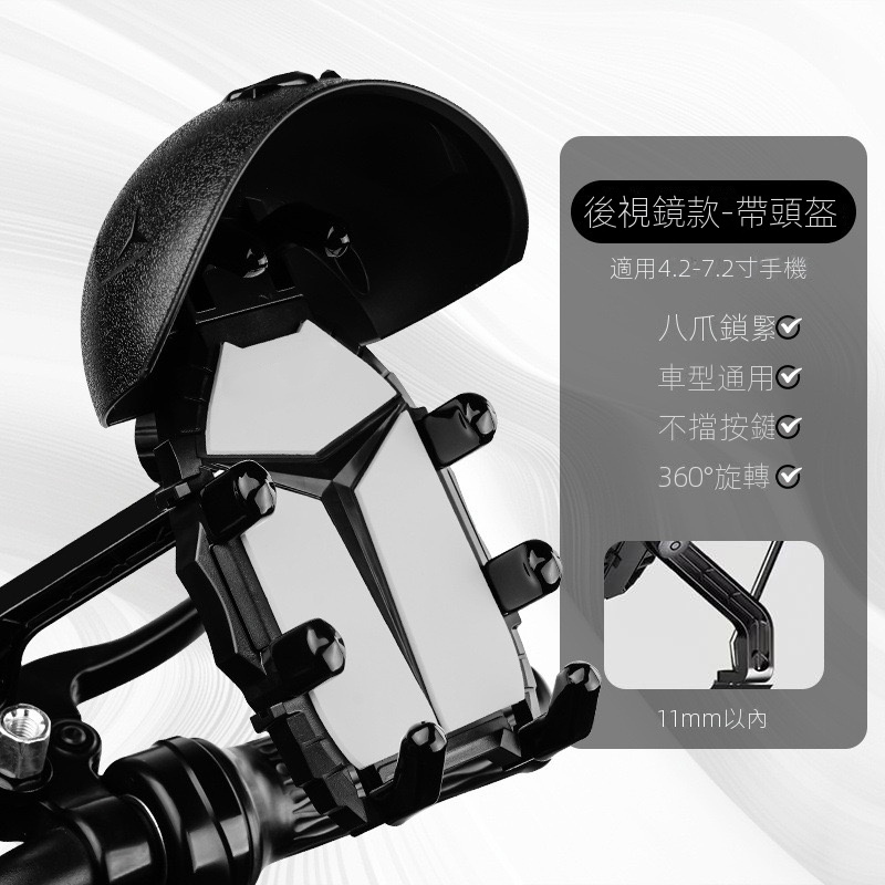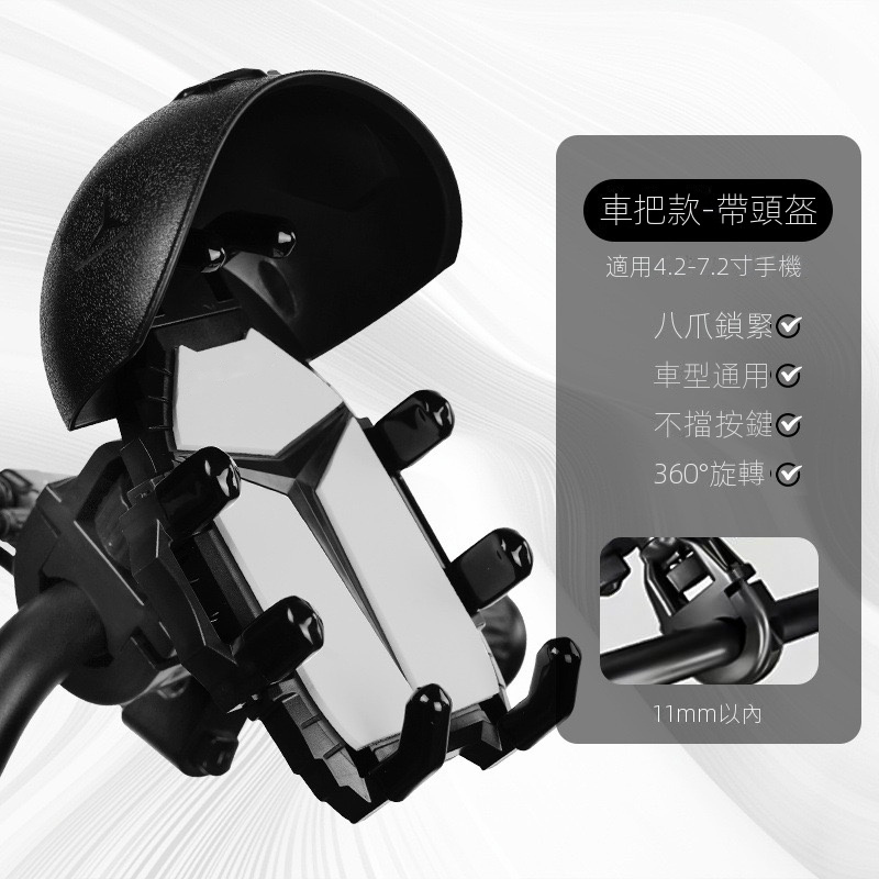 【超牢固】騎行手機支架,頭盔帽簷設計有效擋雨防曬,八爪卡扣狂震手機不脫落,一裝即用全手機適配!