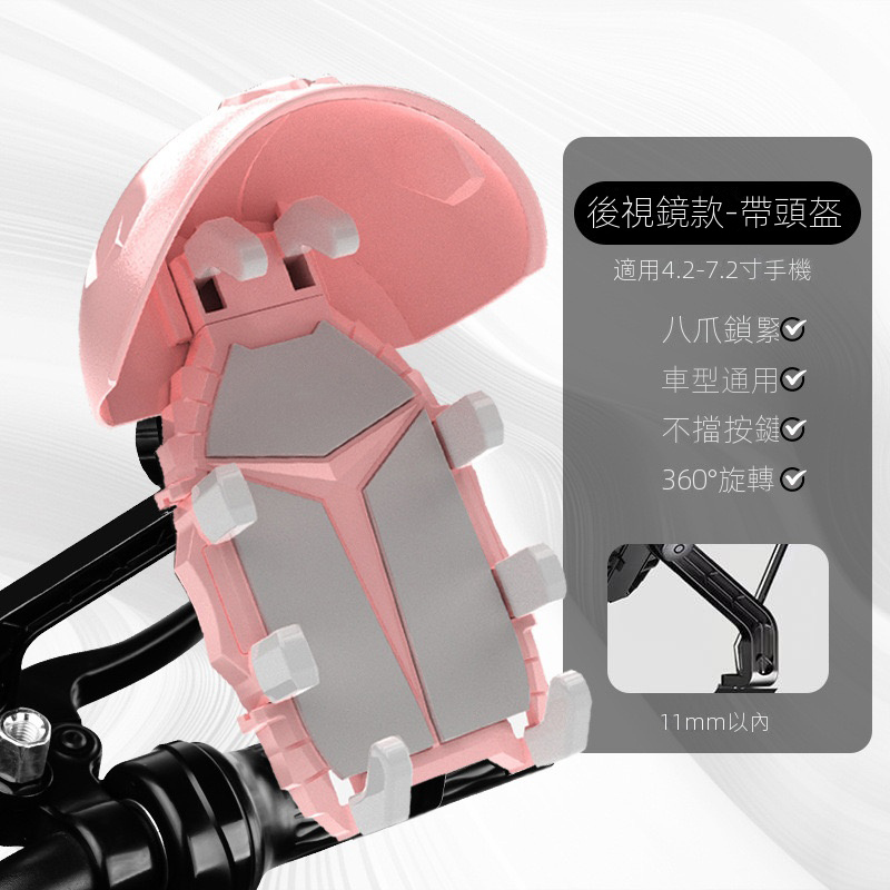 穩固八爪頭盔款【粉色-後視鏡款】